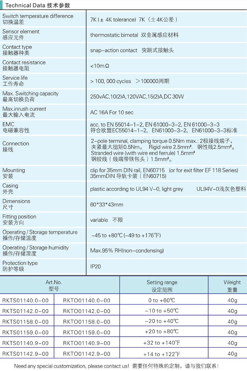 NO和NC在一個柜體中 默認溫度設置 開關精度高 夾子固定 防篡改(預設)恒溫器/接觸斷路器(NC) ,用于在溫度低于最小值時調(diào)節(jié)加熱器或切換信號設備。溫度升高時觸點打開。 防篡改(預設)恒溫器/觸點制造器 (NO) ,用于在超過溫度限制時調(diào)節(jié)過濾風扇、熱交換器或切換信號設備。當溫度升高時觸點閉合。 與通常的轉(zhuǎn)換觸點不同,加熱器和冷卻設備可以通過溫度偏移彼此獨立切換。